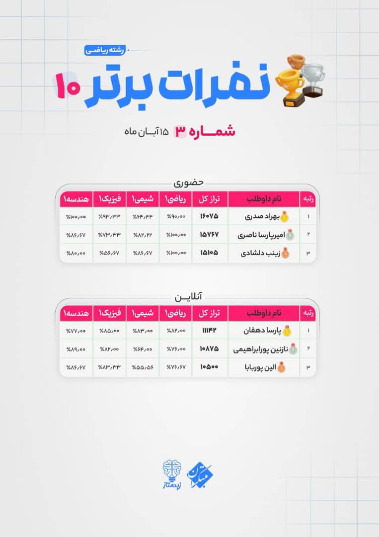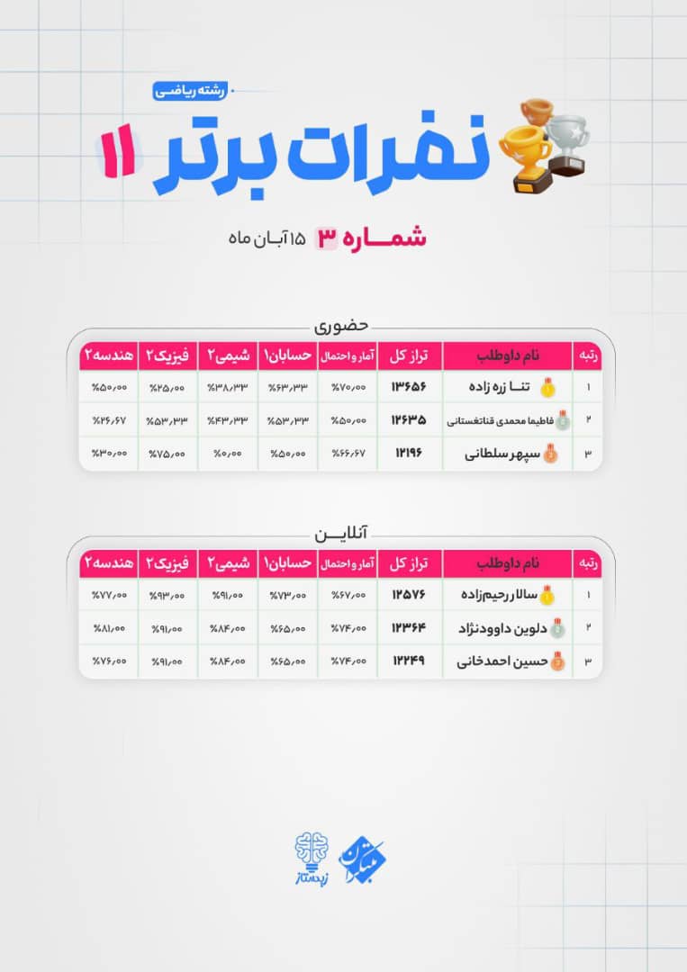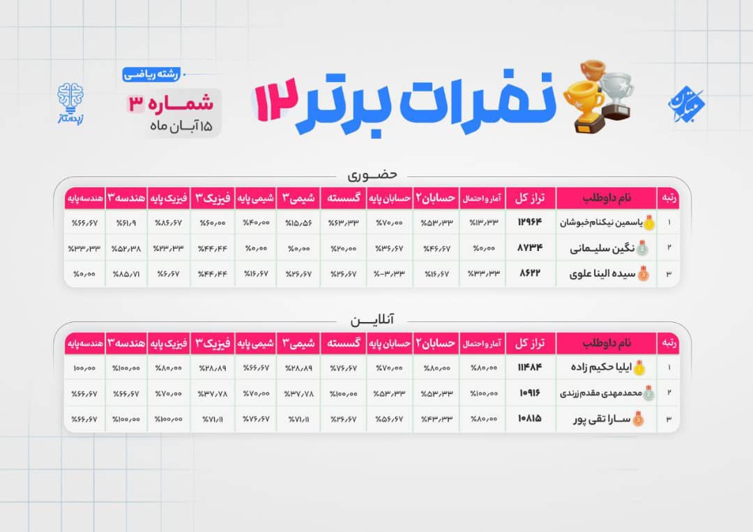 نفرات برتر آزمون شماره 3 (15 آبان)